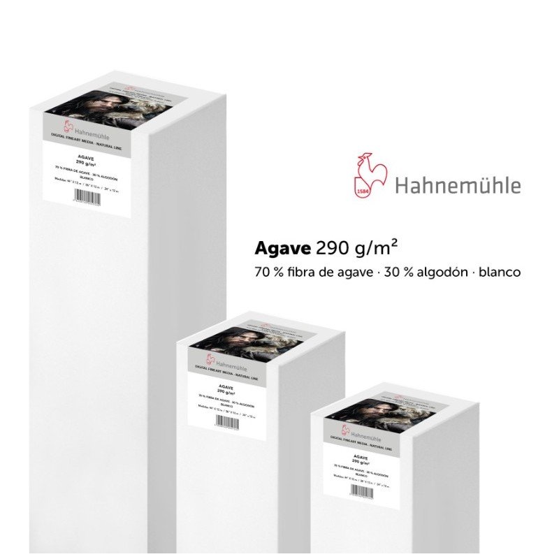 Agave de Hahnemühle completa la gama Natural Line y es un papel FineArt Inkjet a base de las fibras de agave. Estas fibras, también conocidas como fibras sisal, constituyen un 70 % del material base de este papel FineArt Inkjet, un papel especialmente respetuoso con el medio ambiente, el cual destaca por su tono blanco natural y el libre de blanqueadores ópticos. Su estructura de superficie levemente rugosa les confiere a las impresiones una extraordinaria sensación de profundidad, y le da al papel un tacto deliciosamente suave. Su capa Premium inkjet garantiza unos resultados de impresión excelentes con una reproducción de colores extraordinaria, gran nitidez, negros muy profundos y contrastes óptimos. Agave de Hahnemühle no contiene ácidos ni lignina y cumple con los requisitos más rigurosos de resistencia al envejecimiento. El papel Agave surge combinando unas materias primas de fibras especiales, un color natural blanco claro, y una estructura de superficie homogénea, siempre manteniendo la alta calidad de impresión, usual para nuestros papeles. El resultado es un papel inkjet FineArt exclusivo de uso polifacético.