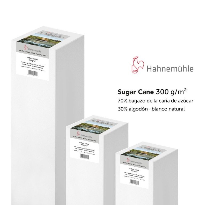 Hahnemühle amplía su gama Natural Line. Sugar Cane es un nuevo papel inkjet de la línea FineArt a base de una materia prima natural y rápidamente renovable – la caña de azúcar. 70% del papel FineArt inkjet es respetuoso con el medio ambiente ya que consiste de bagazo, un producto secundario en la preparación de la caña de azúcar. El papel Sugar Cane de tono cálido blanco natural no contiene blanqueadores ópticos. La estructura superficial es especialmente pronunciada y destaca por su extraordinaria sensación al tacto. Gracias al recubrimiento premium mate inkjet se obtienen resultados excelentes de impresión con una extraordinaria reproducción de colores y detalles, sobre todo, de tonos cálidos e impresiones monocromas. Hahnemühle Sugar Cane es un papel libre de ácido y lignina y cumple con los requisitos más rigurosos de resistencia al envejecimiento. La combinación única de las fibras de caña de azúcar sostenible, la estructura superficial fina y los resultados de calidad impresionantes le dan una fuerza expresiva y una sensualidad desconocida a cada obra de arte.