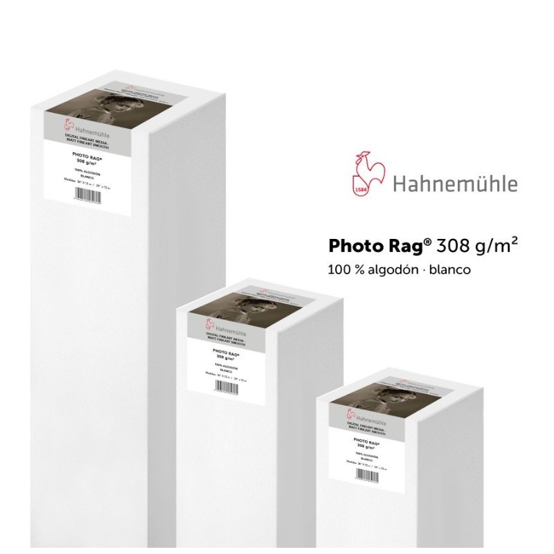 Photo Rag® de Hahnemühle es uno de los papeles más populares del mundo y un noble todoterreno en la producción de impresiones con inkjet de gran calidad para bellas artes. Este papel blanco con base de algodón, fabricado especialmente para el trabajo artístico, convence por su agradable y suave sensación al tacto tan característica y por su estructura de fieltro ligeramente acentuada, que contribuye a darle un aspecto de tridimensionalidad e impresionante profundidad a las imágenes de cualquier obra. En combinación con el recubrimiento premium mate inkjet,hace que el resultado sean impresiones extraordinarias con colores brillantes, un negro profundo, contrastes fascinantes y una reproducción perfecta de los detalles. Este producto clásico no contiene ácidos ni lignina, cumple con los requisitos más rigurosos de resistencia al envejecimiento y es especialmente idóneo para su aplicación en bellas artes. Ya se aplique a la fotografía para bellas artes o a la reproducción artística, la combinación ideal de estructura, calidad de impresión y grosor hace del Photo Rag® el papel FineArt Inkjet más versátil en aplicaciones.