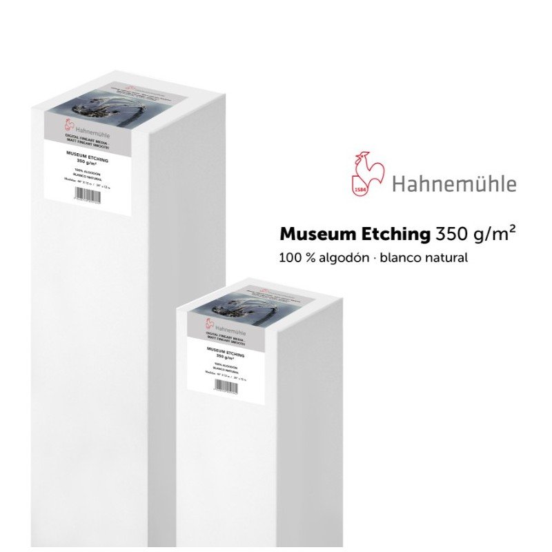 Museum Etching de Hahnemühle es un papel artístico blanco natural hecho a base de algodón que dispone de una capa inkjet especialmente optimizada para las impresiones FineArt. Es el papel de más volumen entre los papeles texturados de Hahnemühle, no contiene blanqueadores ópticos y destaca por su gran resistencia. Su superficie con una elegante marca de fieltro confiere a las impresiones FineArt profundidad y tridimensionalidad adicionales. Su materia prima de 100% algodón le da un agradable tacto suave y un encanto artístico. La capa inkjet premium mate permite unos excelentes resultados de impresión con colores brillantes, un color negro de gran profundidad, alta reproducción de contrastes y nitidez perfecta. Museum Etching es libre de ácido y lignina y cumple con los requisitos más rigurosos de resistencia al envejecimiento, siendo perfecto para la reproducción de fotografías y obras de arte.