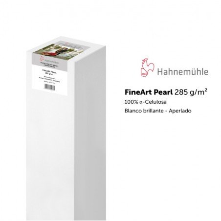 FineArt Pearl de Hahnemühle es un papel FineArt Inkjet con base de celulosa y una capa inkjet especialmente diseñada para las aplicaciones de FineArt. El papel es de color blanco claro y tiene una superficie ligeramente texturizada con un tacto liso sedoso. En combinación con su capa Premium inkjet brillante se consigue un acabado elegante con un sutil efecto de brillo perlado. A la hora de imprimir, este papel convence por su excelente reproducción de colores y detalles, por su negro profundo y los impresionantes contrastes. FineArt Pearl no contiene ácidos ni lignina y cumple con los requisitos más rigurosos de resistencia al envejecimiento. Es perfecto para la reproducción de fotografías con una calidad extraordinaria, tanto en blanco y negro como en color.