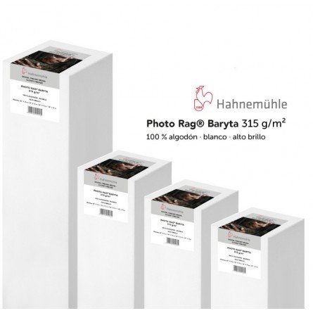 Photo Rag® Baryta de Hahnemühle es un papel de algodón puro con una capa inkjet optimizada para las necesidades de las aplicaciones FineArt. El papel es de color blanco natural de una agradable calidez y no contiene blanqueadores ópticos. Su elegante estructura de superficie está levemente texturizada y confiere al papel un tacto cautivador y un toque artístico. En combinación con la capa Premium inkjet de alto brillo se consiguen unos resultados de impresión extraordinarios con una reproducción de colores y detalles excelentes, un negro de gran profundidad y unos contrastes óptimos. La capa inkjet contiene sulfato de bario, convirtiendo el papel FineArt Baryta en una alternativa real al papel baritado analógico. La combinación del papel artístico de algodón con la capa inkjet de alto brillo confieren a las impresiones FineArt un carácter muy expresivo con una brillantez atractiva y elegante sin reflejos. Photo Rag® Baryta no contiene ácidos ni lignina y cumple con los requisitos más rigurosos de resistencia al envejecimiento.