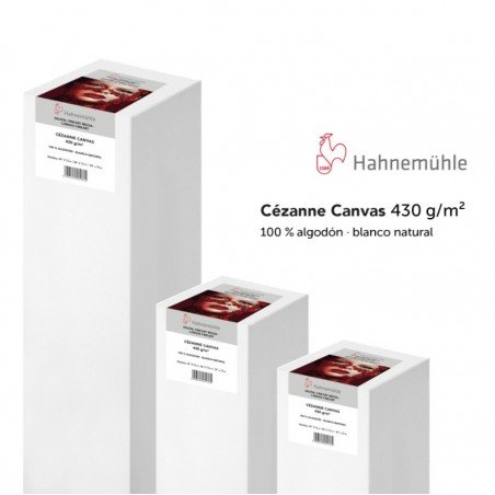 Cézanne Canvas de Hahnemühle es un lienzo inkjet a base de algodón puro de alto gramaje. Cuenta con una elegante estructura de superficie de tejido fino. Este lienzo de color blanco natural no contiene blanqueadores ópticos y destaca por su agradable tono natural. En combinación con su capa Premium inkjet mate se garantizan unos resultados de impresión de gran calidad con una reproducción de colores y detalles excelente, un negro de gran profundidad y unos contrastes impresionantes. Cézanne Canvas no contiene ácidos ni lignina y cumple con los requisitos más rigurosos de resistencia al envejecimiento. Este peso pesado entro los lienzos de la gama Hahnemühle impresiona por los brillantes colores y el negro profundo hasta en los más pequeños detalles, lo que permite que las impresiones FineArt luzcan de una manera especial. A pesar su alto gramaje, el lienzo tiene una elasticidad extraordinaria y se adapta perfectamente al montaje en bastidor.